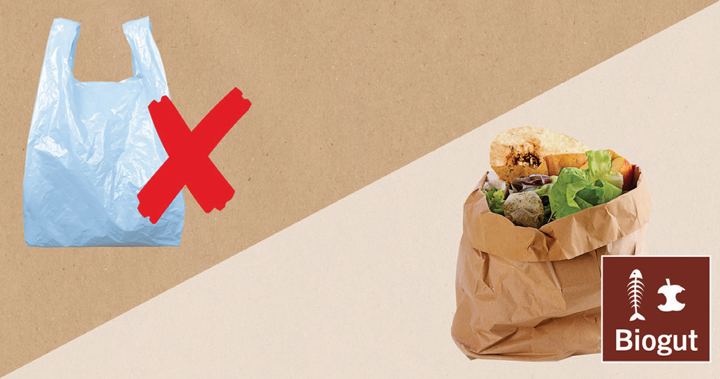 Plastiktüten und Bioabfall passen nicht zusammen! Gelangt Plastik innerhalb des Verwertungskreislaufs in den Kompost, kann es über die Landwirtschaft in unserer Nahrungskette landen. Mit Biogut befüllte Papiertüten dürfen in die Biotonne geworfen werden. Eine passende Papier