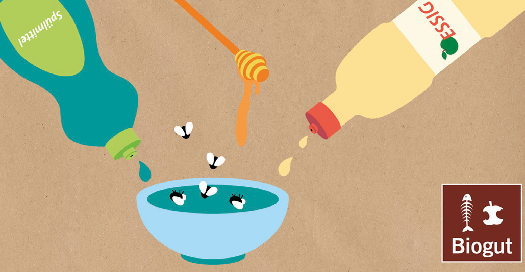Damit deine Biogut-Sammlung im Sommer keine Fruchtfliegen anzieht, stelle ein Schälchen mit Essig, Zucker und etwas Spülmittel neben das Sammelgefäß. Duftneutralisierend wirken auch Kaffeebohnen, die in einem Gefäß in